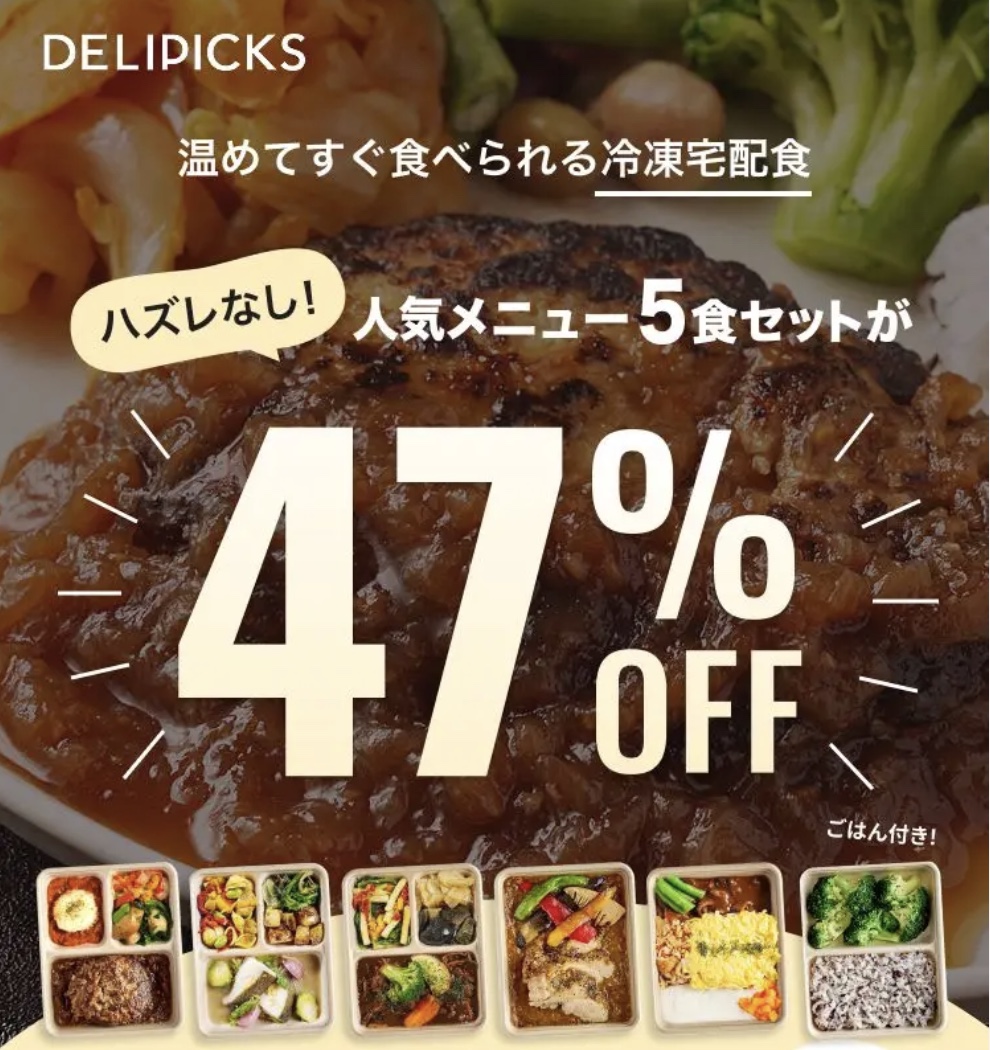 DELIPICKSは初めて利用する人向けに、初回47%OFFのお試しキャンペーンを実施中です。このキャンペーンを使えば、通常よりもかなりお得にスタートできますよ!
