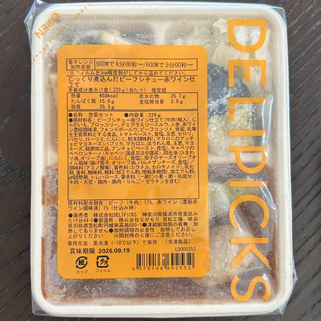 5食すべてが洋食メニュー。DELIPICKS(デリピックス)の強みである「ミシュランシェフ監修の本格洋食」をまずは試してもらおう、という意図が伝わってきます。個人的には、ビーフシチューとハンバーグは絶対に食べてほしいです。この2つだけでも、お試しセットを頼む価値があります。